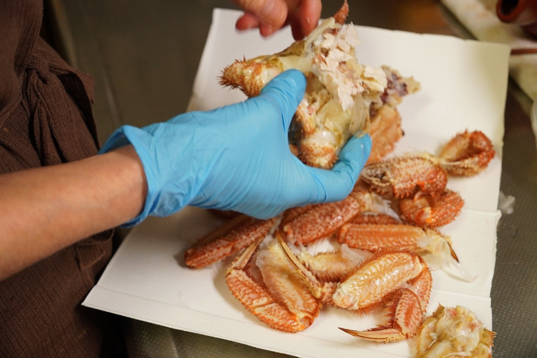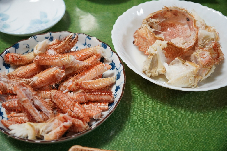 ▲この日の夕ご飯には毛ガニが登場。