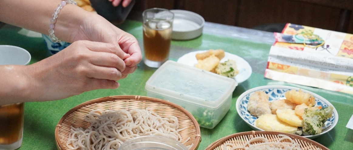墓地では、同じ寺にある親戚のお墓の場所を改めて確認したり、仏教と神道の墓の違いや、お墓はN子さんから3代さかのぼるご先祖様が80年前に建てたことなど、お父様から詳しく聞くことができました。お盆の時と違ってお参りする人も少なく、お父様と手を合わせて拝む静かなひとときは、ご先祖様が身近に感じられる時間となりました。